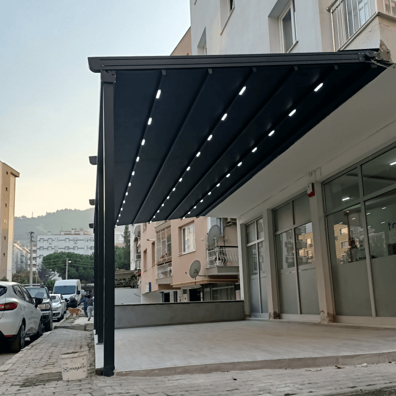 Bu gelişmiş tente ve pergola sistemleri, tamamen su geçirmez, rüzgâr dayanımlı ve uzaktan kontrol edilebilir özelliklerle donatılmıştır. Üstelik LED spot aydınlatmalar ve entegre hoparlör sistemleriyle zenginleştirilebilir.